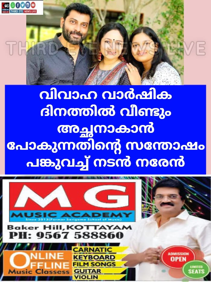 കൊച്ചി : വിവാഹ വാര്ഷിക ദിനത്തില് വീണ്ടും അച്ഛനാകാന് പോകുന്നതിന്റെ സന്തോഷം പങ്കുവച്ച് നടന് നരേന്. ”പതിനഞ്ചാം വിവാഹ വാര്ഷികം ആഘോഷിക്കുന്ന ഈ സ്പെഷ്യല് ദിവസം കുടുംബത്തിലേക്ക് ഒരു പുതിയ അംഗത്തെ കൂടി ഞങ്ങള് കാത്തിരിക്കുകയാണെന്ന സന്തോഷം പങ്കുവയ്ക്കാന് ആഗ്രഹിക്കുന്നു.