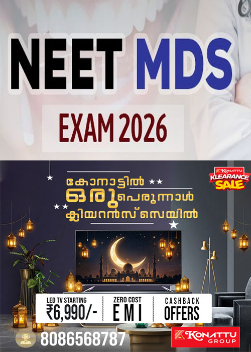നീറ്റ് എംഡിഎസ് 2026 (മാസ്റ്റർ ഇൻ ഡെന്റൽ സർജറി) പരീക്ഷ മേയ് രണ്ടിന് നടത്തുമെന്ന് നാഷണൽ ബോർഡ് ഓഫ് എക്സാമിനേഷൻ അറിയിച്ചു. വിദ്യാർഥികൾക്ക് ഓൺലൈനായി മാർച്ച് 30 വരെ അപേക്ഷിക്കാം. വിജ്ഞാപനം, അപേക്ഷയുമായി ബന്ധപ്പെട്ട കൂടുതൽ വിവരങ്ങൾ ചുവടെ,