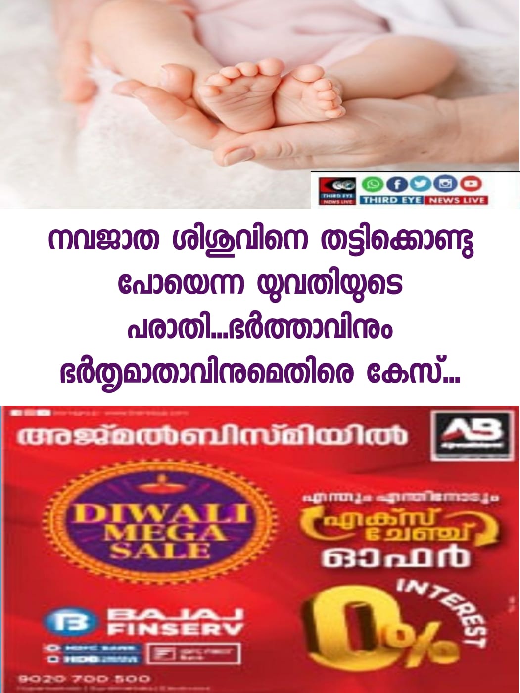 നവജാത ശിശുവിനെ തട്ടിക്കൊണ്ടു പോയതായി പരാതി. 12 ദിവസം പ്രായമുള്ള കുഞ്ഞിനെ കടത്തിക്കൊണ്ടു പോയെന്ന് കുട്ടിയുടെ അമ്മയാണ് പരാതി നൽകിയത്.