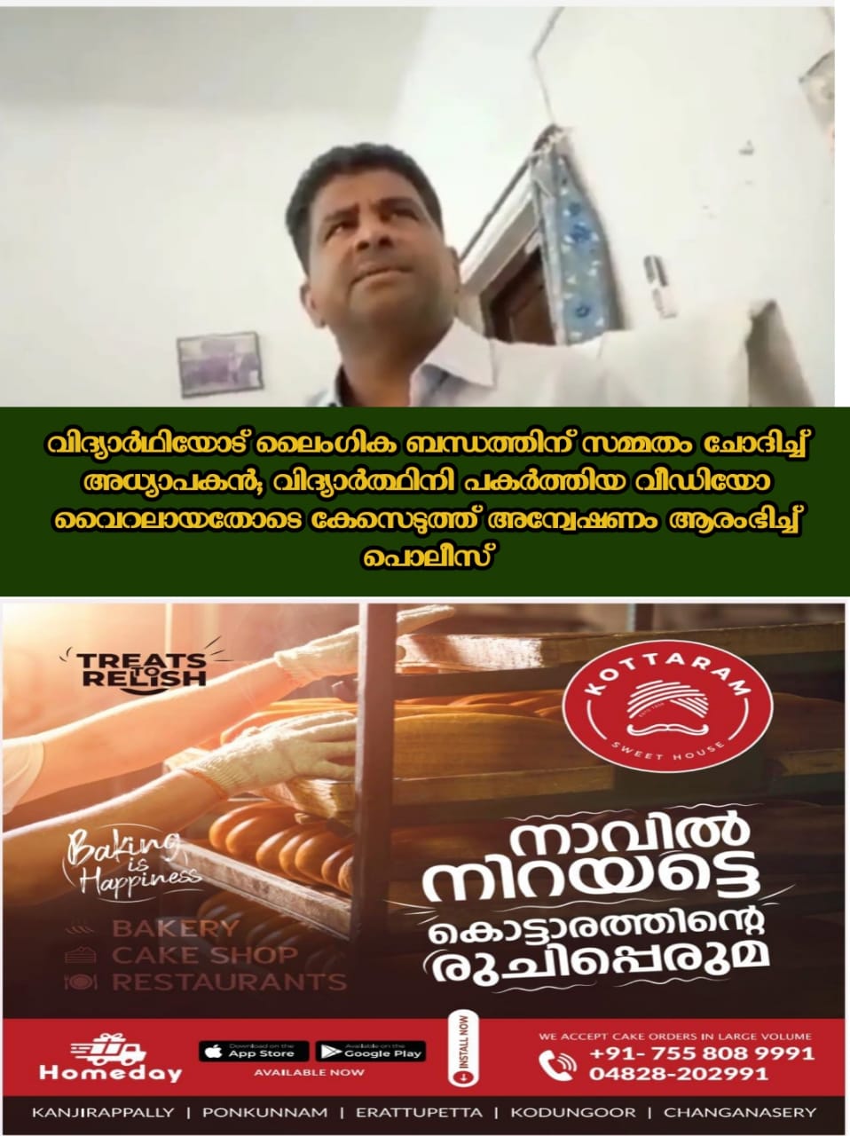 വിദ്യാർഥിയോട് ലൈം​ഗിക ബന്ധത്തിന് സമ്മതം ചോദിച്ച് അധ്യാപകൻ; വിദ്യാർത്ഥിനി പകർത്തിയ വീഡിയോ വൈറലായതോടെ കേസെടുത്ത് അന്വേഷണം ആരംഭിച്ച് പൊലീസ്