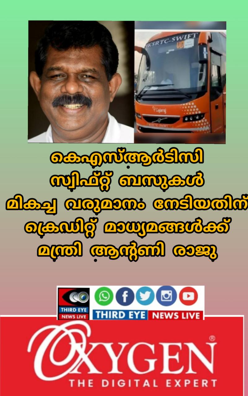 തിരുവന്തപുരം :വിവാദങ്ങള്ക്കിടയിലും കെഎസ്ആര്ടിസി സ്വിഫ്റ്റ് ബസുകള് മികച്ച വരുമാനം നേടുന്നുവെന്ന് സാക്ഷ്യപ്പെടുത്തി ഗതാഗതമന്ത്രി ആന്റണി രാജു. ഓരോ ചെറിയ അപകടങ്ങളും ചര്ച്ചയാക്കിയ മാധ്യമങ്ങളാണ് സ്വിഫ്റ്റ് ബസുകളെ മികച്ച കളക്ഷനിലേക്കെത്തിച്ചതെന്ന് ആന്റണി രാജു പറഞ്ഞു. സ്വിഫ്റ്റ് വരുമാനം ഉയര്ന്നതിന്റെ ക്രെഡിറ്റ് മാധ്യമങ്ങള്ക്കാണ്.