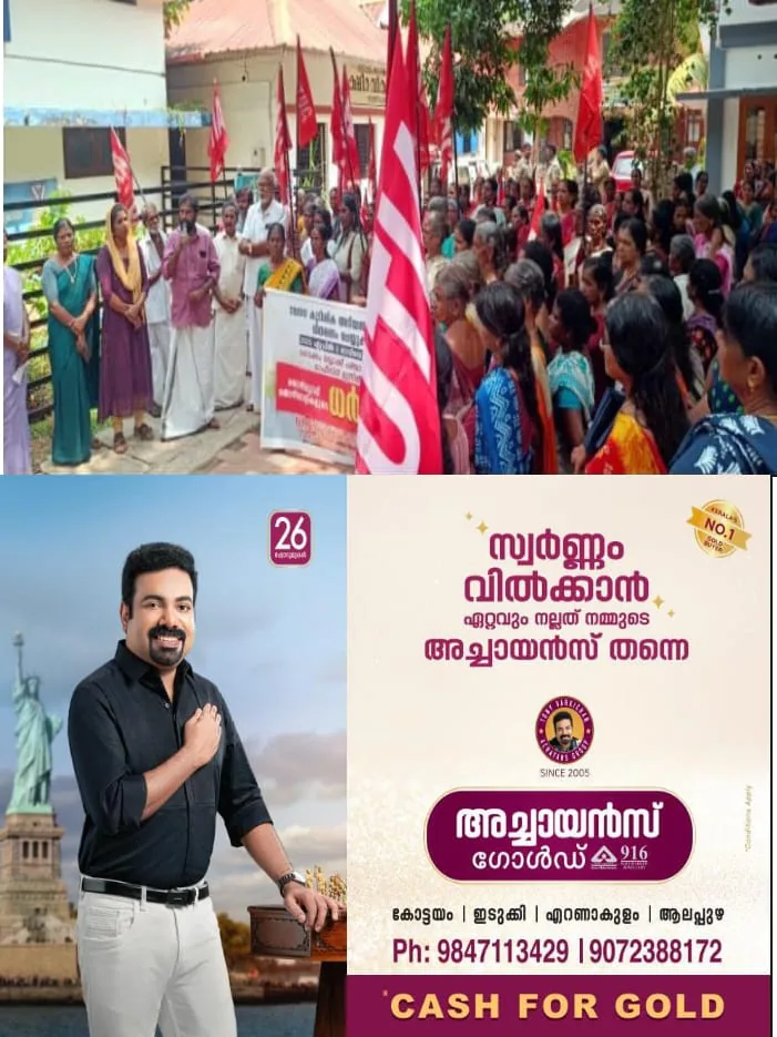 സാബുപി.മണലൊടി ധർണാസമരം ഉദ്ഘാടനം ചെയ്തു. യൂണിയന് മണ്ഡലം സെക്രട്ടറി ജെസീന ഷാജുദീന് അധ്യക്ഷത വഹിച്ചു.കെ.ഡി വിശ്വനാഥന്, പ്രസിഡന്റ് കെ.എസ്. രത്നാകരന്,