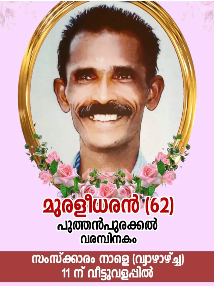 വമ്പിനകം : പുത്തൻപുരക്കൽ മുരളീധരൻ | (62) നിര്യാതനായി.