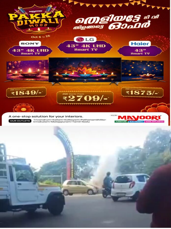 ചങ്ങനാശേരി: ഓടിക്കൊണ്ടിരുന്ന കാറിന് തീപിടിച്ച് അപകടം, ഒഴിവായത് വൻ ദുരന്തം.