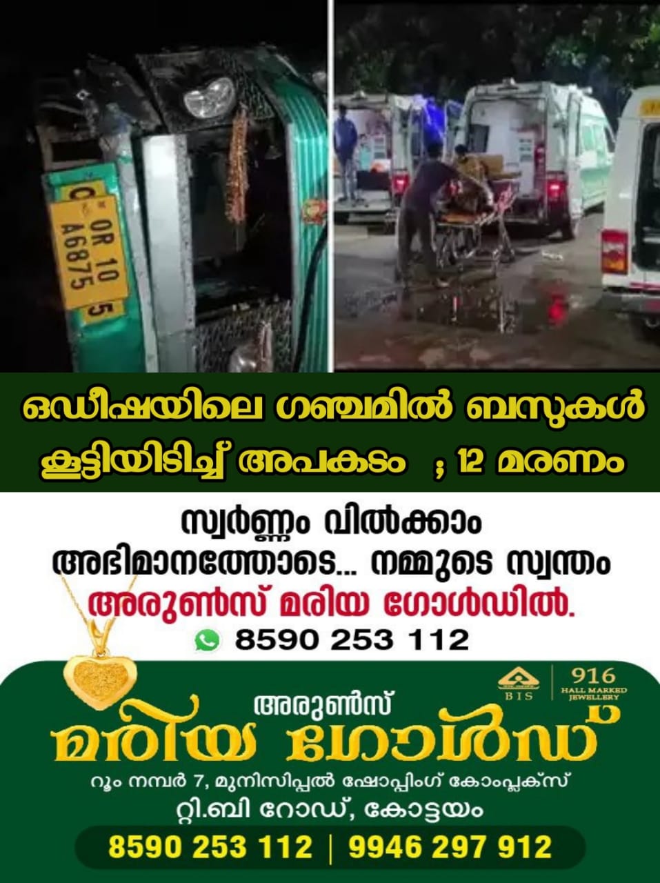 “രണ്ട് ബസുകൾ കൂട്ടിയിടിച്ച് 12 പേർ മരിച്ചു. പരിക്കേറ്റവരെ ഉടൻ തന്നെ എം.കെ.സി.ജി മെഡിക്കൽ കോളേജിൽ ചികിത്സയ്ക്കായി പ്രവേശിപ്പിച്ചു. കേസിൽ അന്വേഷണം നടക്കുന്നു. പരിക്കേറ്റവർക്ക് സാധ്യമായ എല്ലാ സഹായവും നൽകാൻ ൾ ശ്രമിക്കുന്നുണ്ട്,” ദിബ്യ ജ്യോതി പരിദ മാധ്യമപ്രവര്ത്തകരോട് പറഞ്ഞു.
