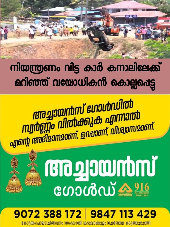 നിയന്ത്രണം വിട്ട് പെരിയാർവാലി കനാലിലേക്ക് മറിഞ്ഞ് ഗൃഹനാഥൻ കൊല്ലപ്പെട്ടു. പട്ടിമറ്റം സ്വദേശിയായ ചക്കരകാട്ടിൽ അബദുൾ അസീസാണ്(73) മരിച്ചത്. വ്യാഴാഴ്ച്ച രാവിലെ 10.30 ഓടെയാണ് സംഭവം. അത്താണി കവലയ്ക്ക് സമീപം 30 അടിയോളം താഴ്ച്ചയിൽ നിറഞ്ഞൊഴുകുന്ന പെരിയാർ വാലിയുടെ ഹൈലെവൽ കനാലിലേക്കാണ് കാർ പതിച്ചത്.