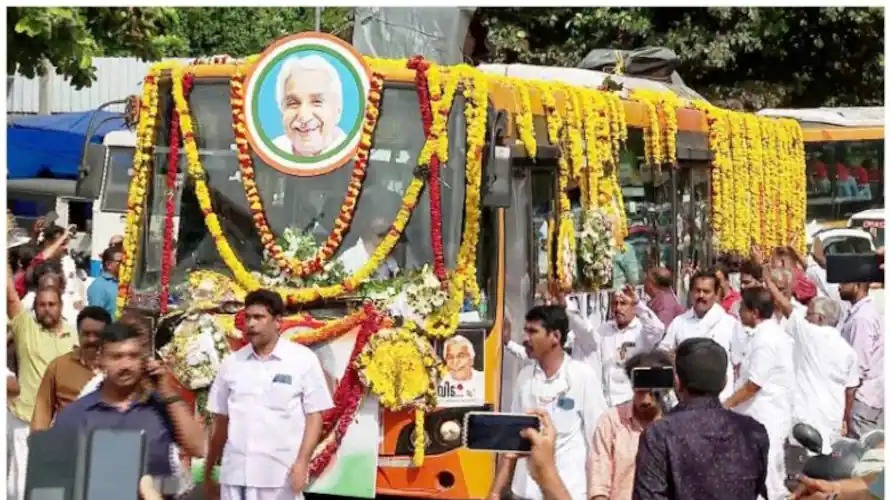 ഉമ്മന്‍ചാണ്ടിയുടെ മൃതദേഹം വഹിച്ചുകൊണ്ടുള്ള വിലാപയാത്ര കൊല്ലത്ത്; ആയൂരിൽ നിന്ന് വാളകത്തേക്ക്