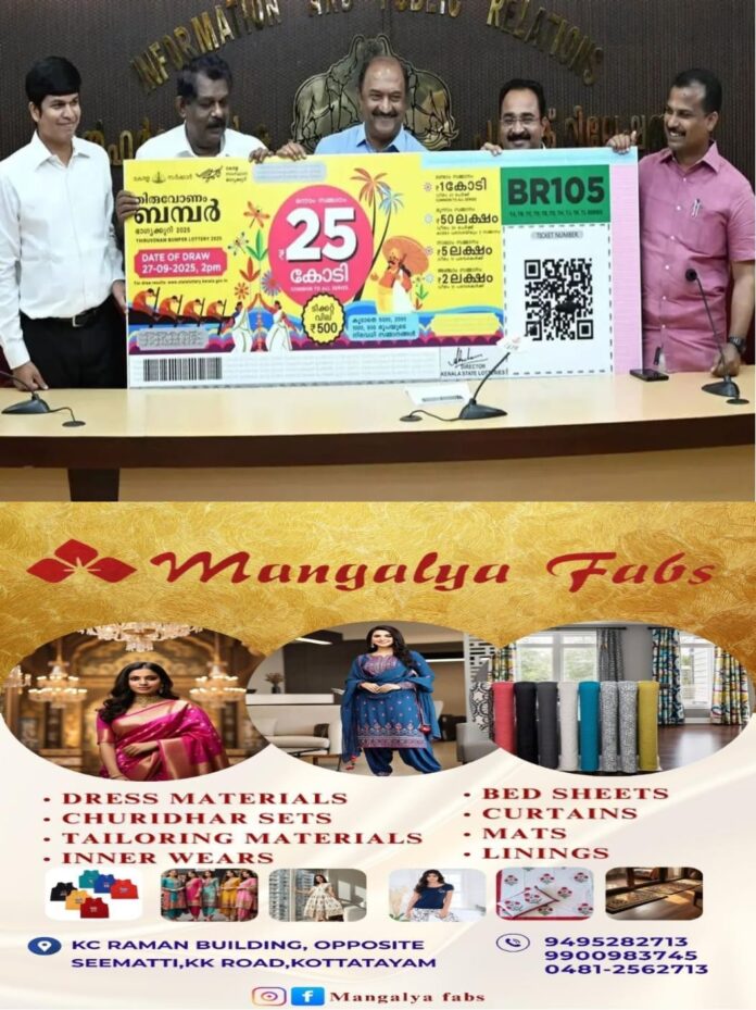 കഴിഞ്ഞ 27-ന് നടത്താന് നിശ്ചയിച്ചിരുന്ന തിരുവോണം ബമ്പർ നറുക്കെടുപ്പ് അപ്രതീക്ഷിതമായുണ്ടായ കനത്ത മഴയിലും ജിഎസ്ടി മാറ്റവുമായി ബന്ധപ്പെട്ടും, ഏജന്റുമാരുടെയും വില്പനക്കാരുടെയും അഭ്യര്ഥന പരിഗണിച്ചും ഈ മാസം 4-ലേക്ക് മാറ്റിവയ്ക്കുകയായിരുന്നു. തിരുവോണം ബമ്പർ ഭാഗ്യക്കുറിയുടെ 75 ലക്ഷം ടിക്കറ്റുകളാണ് ഈ വര്ഷം അച്ചടിച്ച് വിറ്റഴിച്ചത്. പാലക്കാടാണ് ഏറ്റവും കൂടുതല് വില്പന നടന്നത്. 14,07,100 എണ്ണം ടിക്കറ്റുകളാണ് ഇവിടെ വിറ്റത്. രണ്ടാം സ്ഥാനം തൃശ്ശൂര് ജില്ലയ്ക്കാണ് , 9,37,400 ടിക്കറ്റുകളും മൂന്നാം സ്ഥാനത്തുള്ള തിരുവനന്തപുരത്ത് 8,75,900 ടിക്കറ്റുകളും വില്പന നടന്നു.