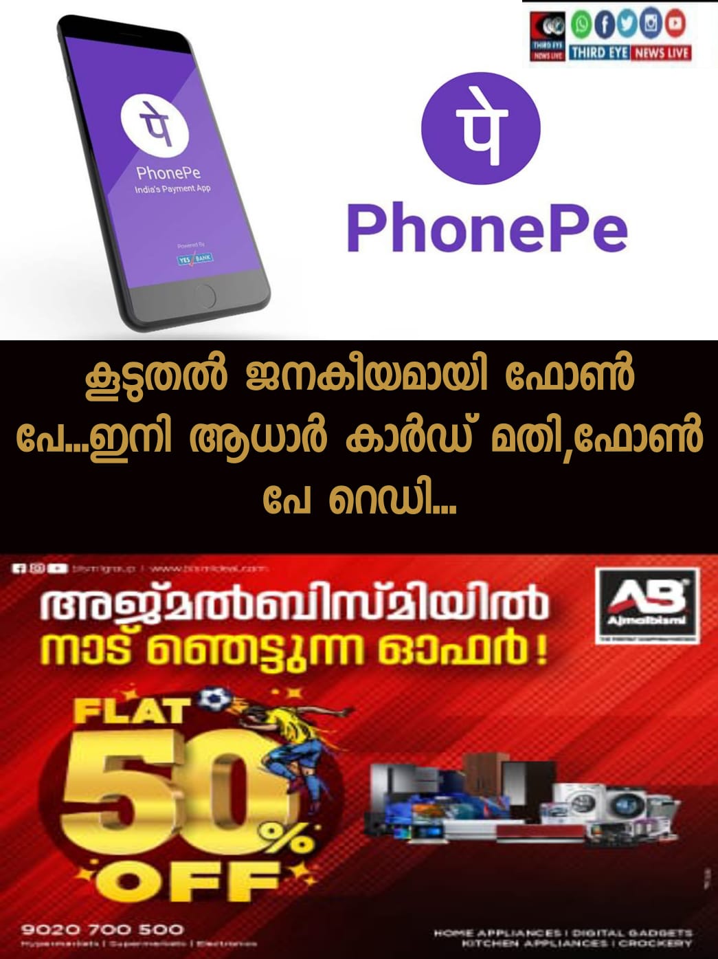 ഫോൺപേ ഉപയോഗിച്ച് തുടങ്ങാൻ ഇനി ആധാർ കാർഡ് മതി;യുപിഐ ആക്ടിവേറ്റ് ചെയ്യാൻ ഇനി ആധാർ നമ്പർ മതിയാകും എന്ന സവിശേഷത ഫോൺ പേയ്ക്ക് സ്വന്തം,ഇതാദ്യമായിട്ടാണ് ഒരു തേർഡ് പാർട്ടി പേയ്മെന്റ് പ്ലാറ്റ്ഫോം ആധാർ കാർഡ് ഉപയോഗിച്ച് യുപിഐ ആക്ടിവേറ്റ് ചെയ്യുന്ന ഫീച്ചർ കൊണ്ടുവന്നിരിക്കുന്നത്.