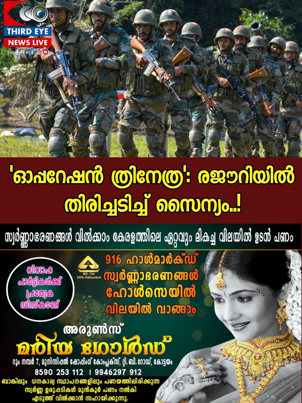 വനത്തില് ഒളിച്ചിരിക്കുന്ന ഭീകരരെ കണ്ടെത്തുന്നതിനായി ഓപ്പറേഷന് ത്രിനേത്ര പുരോഗമിക്കുകയാണ്. രജൗറിക്കു പുറമേ ബരാമുള്ളയിലും ഒരു ഭീകരനെ കീഴ്പ്പെടുത്തിയിട്ടുണ്ട്.