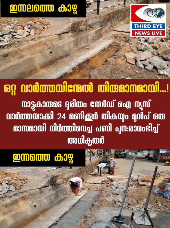 വ്യാപാരികളും യാത്രക്കാരും വഴിനടക്കാനാകാതെ ദുരിതക്കയത്തിലായതോടെ അവർ തേർഡ് ഐ ന്യൂസിനെ വിവരം അറിയിച്ചു. ഇതോടെ സമീപവാസികളുടെ ദുരിതം തേർഡ് ഐ ന്യൂസ് വാർത്തയാക്കി.