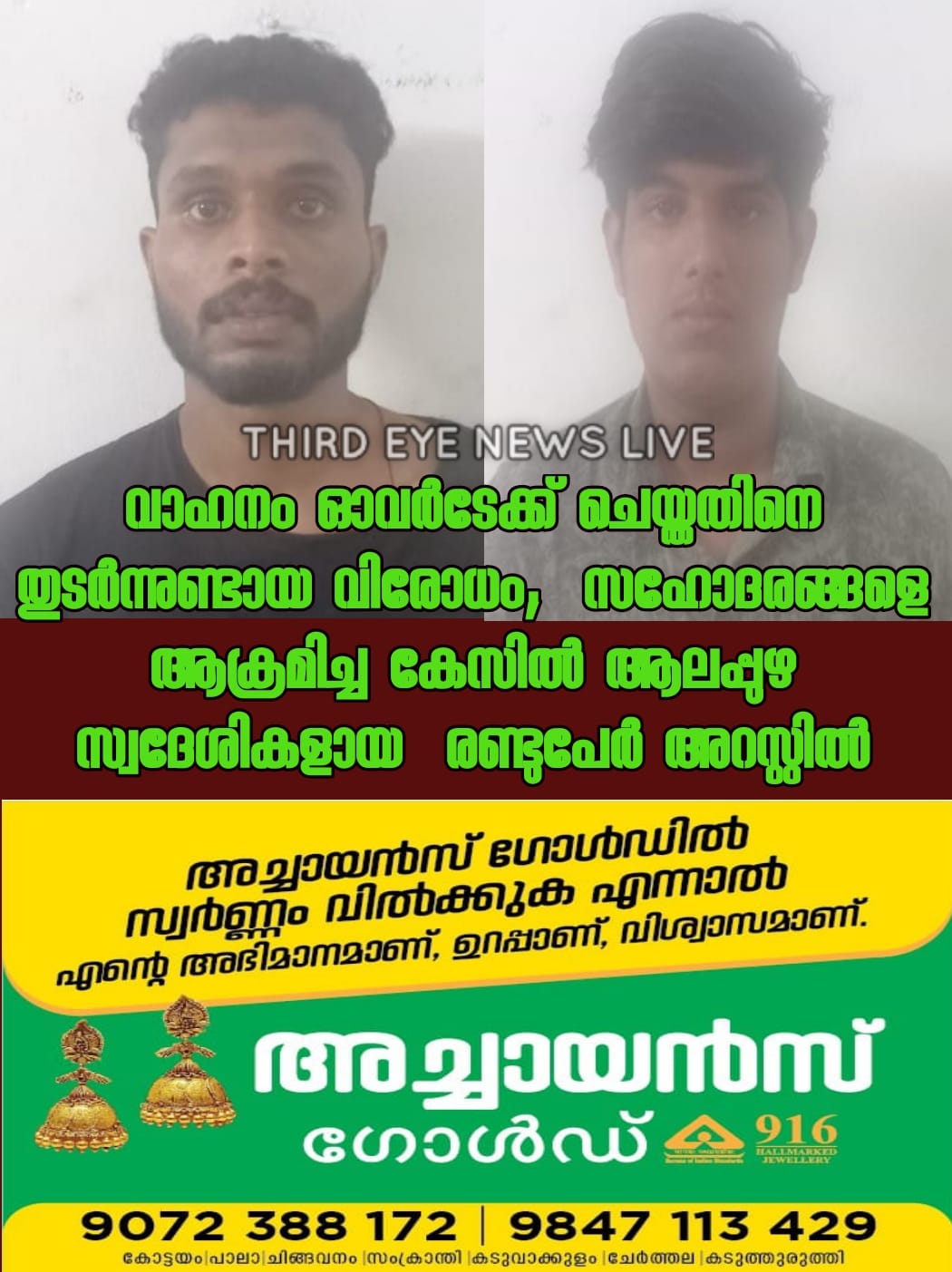 ഇവർ കഴിഞ്ഞ ദിവസം കുറിച്ചി മോസ്കോ കവല ഭാഗത്ത് വെച്ച് കുറിച്ചി സ്വദേശികളായ സിജു കുര്യാക്കോസിനെയും ഇയാളുടെ സഹോദരനായ സജി കുര്യാക്കോസിനെയും ആക്രമിക്കുകയായിരുന്നു. സജി കാറില് പോകുന്ന സമയം പ്രതികൾ ഇരുവരും മോട്ടോർസൈക്കിളിൽ എത്തി സജി ഓടിച്ച വണ്ടി തടഞ്ഞു നിർത്തി ചീത്ത വിളിക്കുകയും മർദ്ദിക്കുകയുമായിരുന്നു.