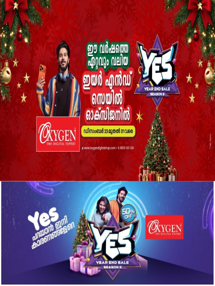 കോട്ടയം : കേരളത്തിലെ പ്രമുഖ ഇലക്ട്രോണിക്സ് റീട്ടെയിൽ ശൃംഖലയായ ഓക്സിജൻ ദി ഡിജിറ്റൽ എക്സ്പേർട്ട്, യെസ് ഇയർ എൻഡ് സെയിലിന്റെ ഭാഗമായി ഇയർ എൻഡ് സെയിൽ മെഗാ ആഘോഷം എല്ലാ ഓക്സിജൻ ഷോറൂമുകളിലും ആരംഭിച്ചു.