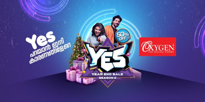 കേരളത്തിലുടനീളമുള്ള എല്ലാ ഓക്സിജൻ ഷോറൂമുകളിലും ഓക്സിജൻ ‘യെസ്’ ഇയർ എൻഡ് സെയിൽ സീസൺ 5 ഇതിനോടകം ആരംഭിച്ചു കഴിഞ്ഞു. തങ്ങളുടെ ഡിജിറ്റൽ, ഹോം അപ്ലയൻസസ് സ്വപ്നങ്ങളോട് ‘YES’ പറയാൻ ആഗ്രഹിക്കുന്നവർക്ക് ഇനി മടിച്ചുനിൽക്കേണ്ടതില്ല. “ഇനി YES പറയാൻ കാരണങ്ങളേറെ” എന്ന മുദ്രാവാക്യവുമായി ഓക്സിജൻ ഷോറൂമുകൾ സന്ദർശിച്ച്, ഈ വർഷാവസാനത്തിലെ ഏറ്റവും വലിയ ഷോപ്പിംഗ് അനുഭവത്തിന്റെ ഭാഗമാകാൻ ഏവരെയും ക്ഷണിക്കുന്നു.