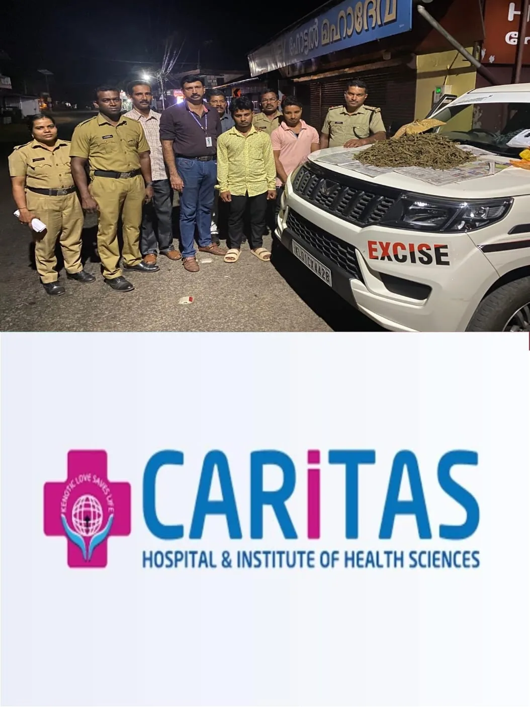 റെയിഡിൽ പാലാ റേഞ്ച് എക്സൈസ് ഇൻസ്പെക്ടർ ദിനേശ് ബി, അസിസ്റ്റന്റ് എക്സൈസ് ഇൻസ്പെക്ടർ ഫിലിപ്പ് തോമസ്, പ്രിവന്റ്റ്റീവ് ഓഫീസർ അനീഷ് കുമാർ കെ വി, പ്രിവന്റി ഓഫീസർ (ഗ്രേഡ്) മനു ചെറിയാൻ, സിവിൽ എക്സൈസ് ഓഫീസർ മാരായ തൻസീർ, അഖിൽ പവിത്രൻ, അരുൺ ലാൽ, വനിതാ സിവിൽ എക്സൈസ് ഓഫീസർ പ്രിയ കെ ദിവാകരൻ, എക്സൈസ് ഡ്രൈവർ സുരേഷ് ബാബു തുടങ്ങിയവർ പങ്കെടുത്തു.