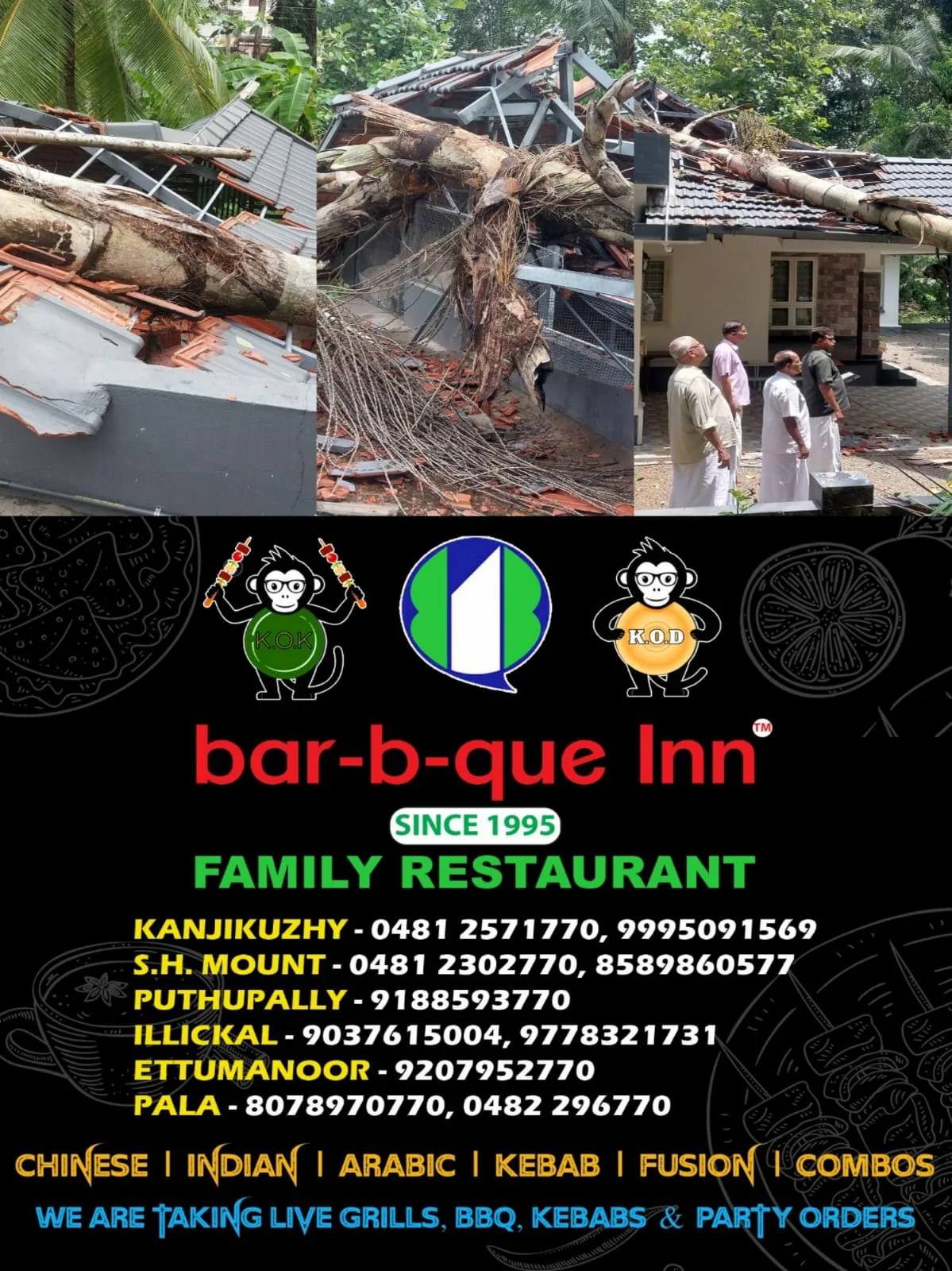 കൂരോപ്പട : കാറ്റിൽ മരം വീണ് വീട് തകർന്നു ; ലക്ഷങ്ങളുടെ നാശനഷ്ടം. ഇന്നലെ രാത്രിയുണ്ടായ കനത്ത കാറ്റിലും മഴയിലുമാണ് കൂരോപ്പട കവലക്ക് സമീപം താമസിക്കുന്ന ശ്രീപാദം ( ചാമക്കാല ) സുമംഗലയുടെ വീടിന് മുകളിലേക്ക് കൂറ്റൻ ചൂണ്ടപ്പന കടപുഴകി വീണത്.