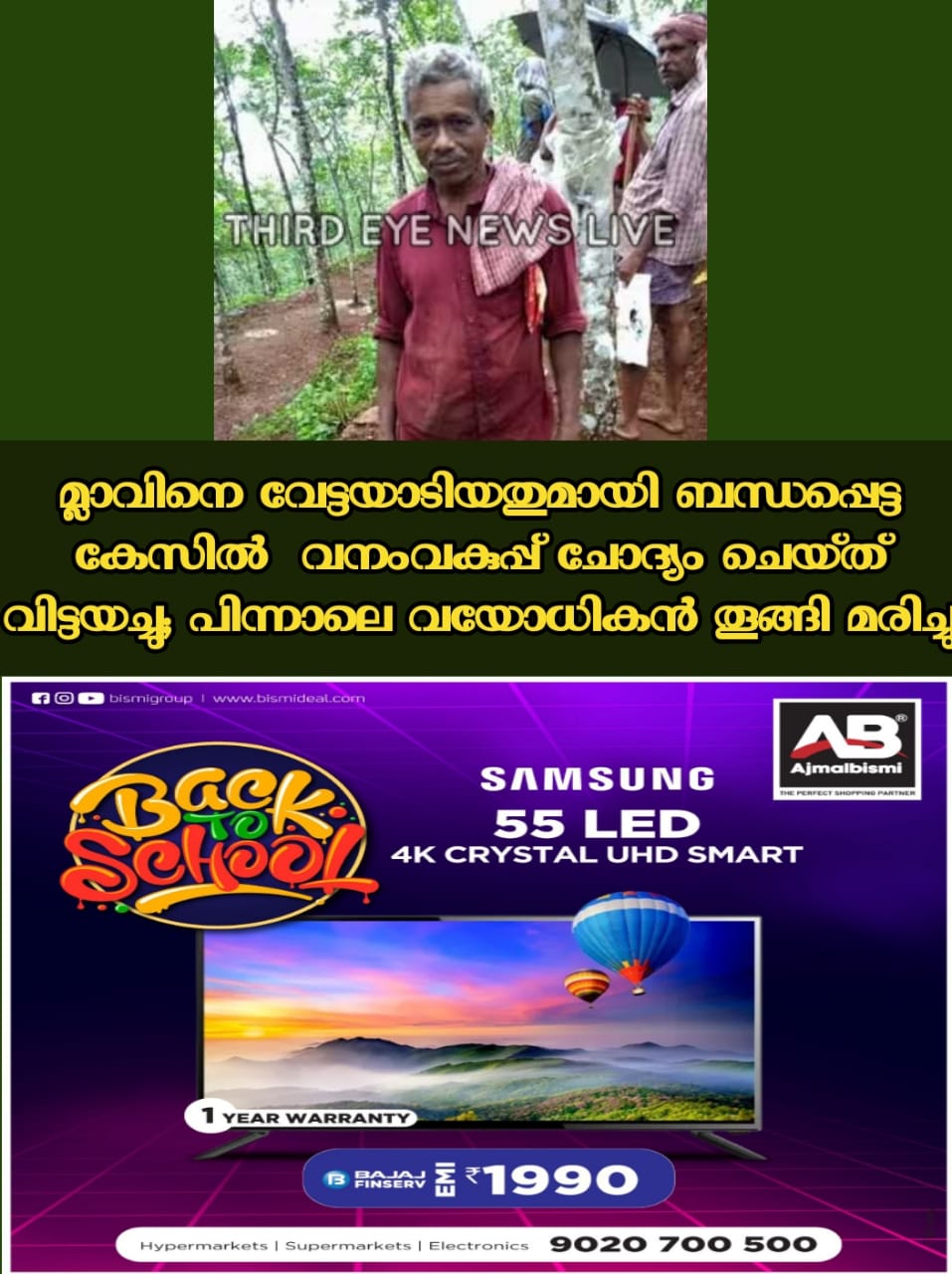 പത്തനംതിട്ട: മ്ലാവിനെ വേട്ടയാടിയതുമായി ബന്ധപ്പെട്ട കേസിൽ വനംവകുപ്പ് ചോദ്യം ചെയ്ത് വിട്ടയച്ചയാൾ തൂങ്ങി മരിച്ച നിലയിൽ. തൊഴിലുറപ്പ് തൊഴിലാളിയായ പൂച്ചക്കുളം സ്വദേശി രാധാകൃഷ്ണൻ (60) ആണ് മരിച്ചത്. രാധാകൃഷ്ണൻ വനം വകുപ്പ് ഉദ്യോഗസ്ഥരുടെ ഭീഷണി മൂലം ആത്മഹത്യ ചെയ്തതാണെന്ന് ആരോപിച്ച് നാട്ടുകാർ രംഗത്തെത്തി.