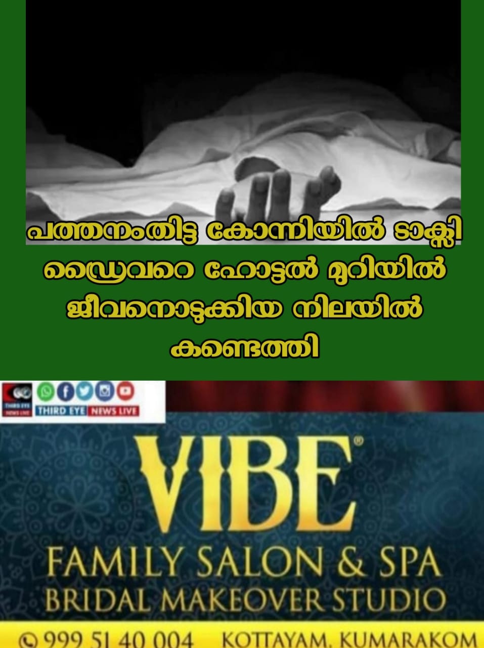 ഹോട്ടൽ മുറിയിൽ തൂങ്ങി മരിച്ച നിലയിലാണ് മൃതദേഹം കണ്ടത്. ആത്മഹത്യ ആണെന്നാണ് പ്രാഥമിക നിഗമനം. ചൊവ്വാഴ്ച്ച ടാക്സി ഓട്ടം പോവുകയാണെന്ന് പറഞ്ഞാണ് വീട്ടിൽ നിന്ന് ഇറങ്ങിയത്.