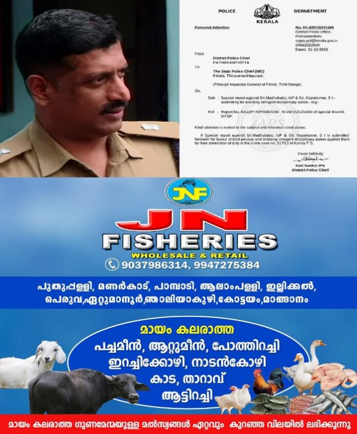 തിരുവനന്തപുരം: പത്തനംതിട്ട മുൻ എസ്എഫ്ഐ ജില്ലാ പ്രസിഡൻ്റ് ജയകൃഷ്ണൻ തണ്ണിത്തോടിനെ കസ്റ്റഡിയിൽ മർദിച്ച സംഭവത്തില് കോന്നി സിഐയായിരുന്ന മധുബാബുവിനെതിരെ നൽകിയ അന്വേഷണ റിപ്പോർട്ട് പുറത്ത്. മുൻ എസ്പി ഹരിശങ്കറാണ് റിപ്പോർട്ട് നൽകിയത്. 2016ലാണ് ഡിജിപിക്ക് മധുബാബുവിനെതിരെ നടപടി ശുപാർശ ചെയ്തത്. സ്ഥിരമായി കസ്റ്റഡി മർദ്ദനം നടത്തുവെന്നായിരുന്നു റിപ്പോർട്ട്. കൂടാതെ ക്രമസമാധന ചുമതലയിൽ വയ്ക്കരുതെന്നും റിപ്പോര്ട്ടില് ശുപാർശ ചെയ്തിരുന്നു. എന്നാല്, അഡ്മിനിസ്ട്രറ്റീവ് ട്രൈബ്യൂണലിനെ സമീപിച്ച് മധുബാബു അനുകുല ഉത്തരവ് വാങ്ങുകയായിരുന്നു. എസ്പി ഹരിശങ്കറിന്റെ റിപ്പോർട്ട് തള്ളി മധു ബാബുവിന് സ്ഥാനക്കയറ്റവും നൽകുകയായിരുന്നു.