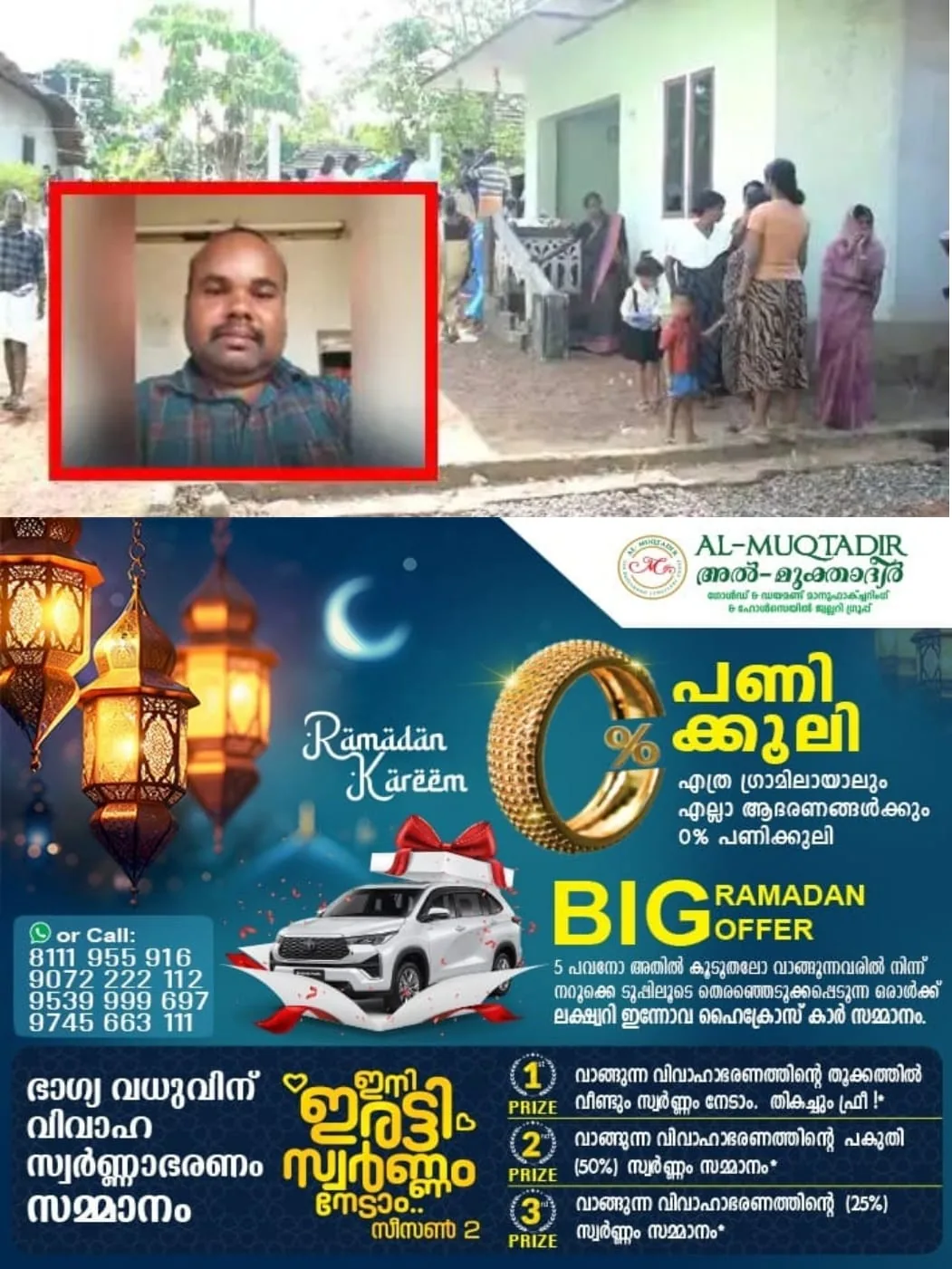 നെടുമ്പാള് വഞ്ചിക്കടവ് കാരിക്കുറ്റി വീട്ടില് രാമകൃഷ്ണന്റെ മകന് സന്തോഷ്(45) ആണ് മരിച്ചത്.