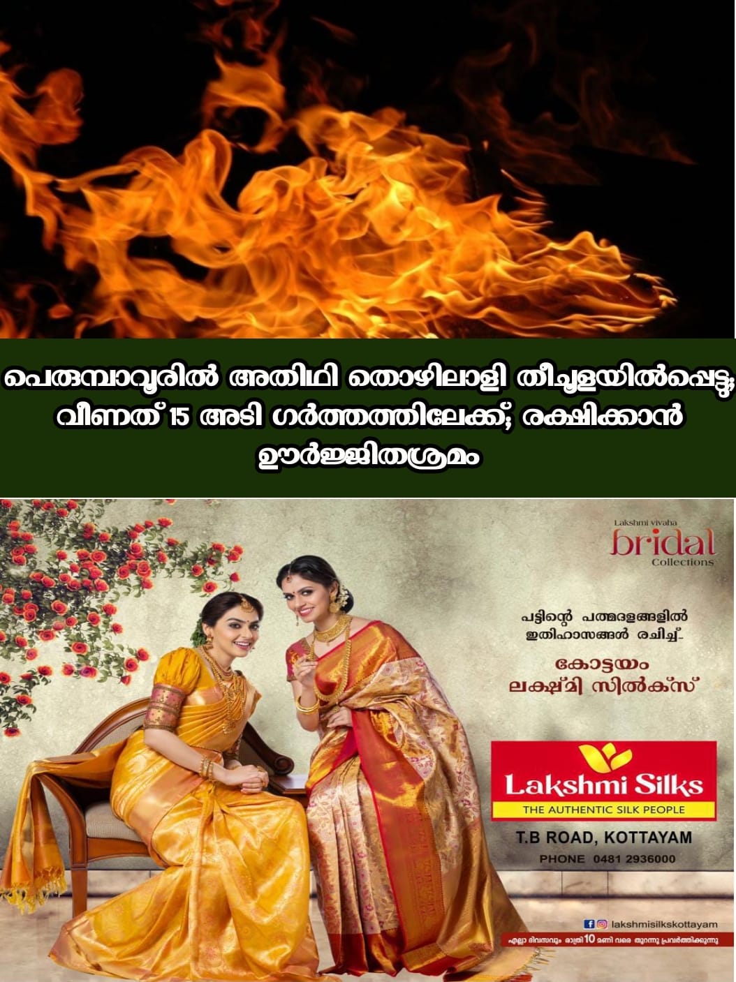 കൊച്ചി: അതിഥി തൊഴിലാളി തീച്ചൂളയില് വീണു. മാലിന്യം കത്തിക്കുന്ന കുഴിയിലാണ് കൊല്ക്കത്ത സ്വദേശി നസീര് (23) വീണത്.