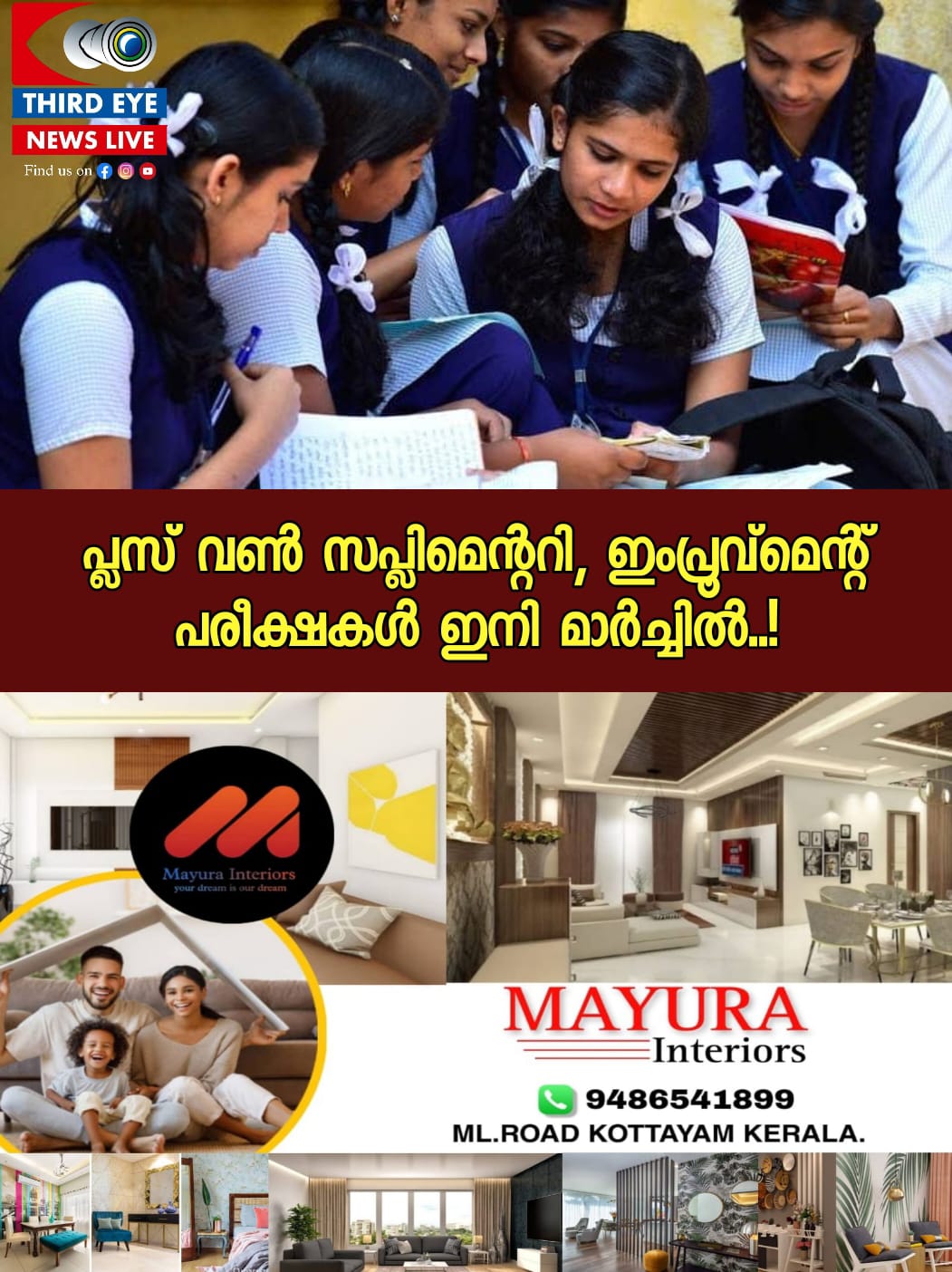 പ്ലസ് ടു വിദ്യാർഥികൾക്ക് ഒന്നാം വർഷത്തെ ഇംപ്രൂവ്മെന്റ്, സപ്ലിമെന്ററി പരീക്ഷകൾ അടുത്ത അധ്യയനവർഷം മുതൽ വാർഷികപ്പരീക്ഷയ്ക്കൊപ്പം എഴുതാൻ അവസരമൊരുക്കും. പ്ലസ് ടു പരീക്ഷ നടക്കുന്ന ദിവസങ്ങളിൽ ഉച്ചയ്ക്കുശേഷമോ അടുത്ത ദിവസമോ പ്ലസ് വൺ പരീക്ഷ നടത്തിയാൽ സപ്ലിമെന്ററി, ഇംപ്രൂവ്മെന്റ് എഴുതുന്നവർക്ക് സൗകര്യമൊരുക്കാമെന്നാണ് വിലയിരുത്തൽ.