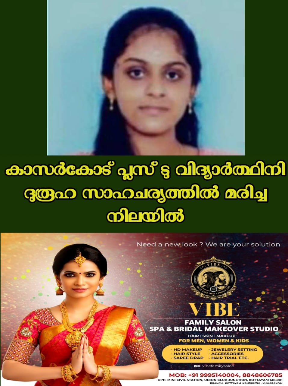 കാസർകോട്: പ്ലസ് ടു വിദ്യാർഥിനിയെ കിടപ്പുമുറിയിൽ ദുരൂഹ സാഹചര്യത്തിൽ മരിച്ച നിലയിൽ കണ്ടെത്തി. ബന്തടുക്ക മലാംകുണ്ട് ഇല്ലത്തിങ്കാൽ സ്വദേശിനി കെ വി ശരണ്യ (17) ആണ് മരിച്ചത്. ബന്തടുക്ക ഗവ. ഹയർ സെക്കൻഡറി സ്കൂളിലെ പ്ലസ് ടു വിദ്യാർഥിനിയായിരുന്നു.