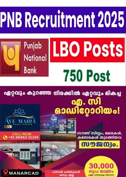 പഞ്ചാബ് നാഷണല് ബാങ്ക് (PNB) ല് ലോക്കല് ബാങ്ക് ഓഫീസര് (LBO) റിക്രൂട്ട്മെന്റ്. ആകെ ഒഴിവുകള് 750.