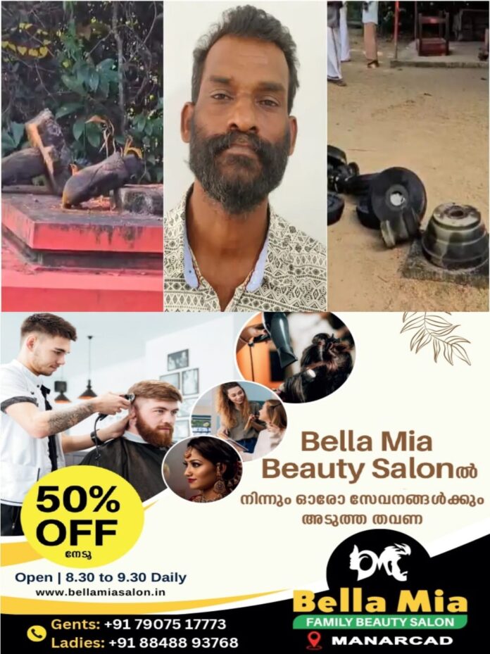 കൊട്ടാരക്കര ഏലാപുറം സർപ്പക്കാവില്‍ അതിക്രമിച്ചുകയറി വിഗ്രഹവും ക്ഷേത്രസ്വത്തുക്കളും നശിപ്പിച്ചയാൾ പിടിയിൽ; പ്രതിയുടെ ലക്ഷ്യം മതവികാരം വ്രണപ്പെടുത്തലെന്ന് പോലീസ്