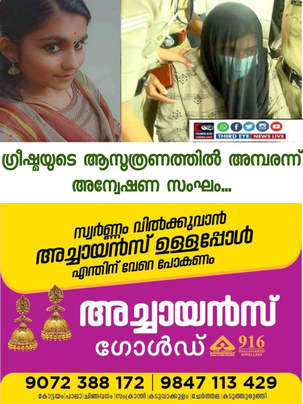 ഇരുവരും ലിവിംഗ് റൂമിൽ അല്പനേരം ചെലവഴിച്ചശേഷം കിടപ്പുമുറിയിലേക്ക് പോയി.ഇവിടെവച്ചാണ് വിഷംകലക്കിയ കഷായം നൽകിയതെന്ന് ഗ്രീഷ്മ സമ്മതിച്ചു.അലമാരയിൽ സൂക്ഷിച്ചിരുന്ന താലിയും ചരടും പരീക്ഷയിൽ ജയിച്ചപ്പോൾ ഷാരോൺ കൊടുത്ത വളയും പൊലീസ് കണ്ടെടുത്തു.