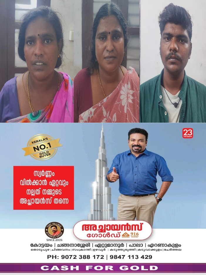 പൊൻകുന്നം സ്റ്റേഷൻ എസ്.എച്ച്.ഓ ദിലീഷ് ടി, എസ്.ഐ മാരായ ഹരിഹരകുമാർ നായർ, ബിജു എം.ജി, മനോജ് കെ.ജി, എ.എസ്.ഐ ഷീനാ മാത്യു, സി.പി.ഓ കിരൺ.എസ്.കർത്താ എന്നിവർ ചേർന്നാണ് ഇവരെ അറസ്റ്റ് ചെയ്തത്. കോടതിയിൽ ഹാജരാക്കിയ മൂവരെയും റിമാൻഡ് ചെയ്തു.