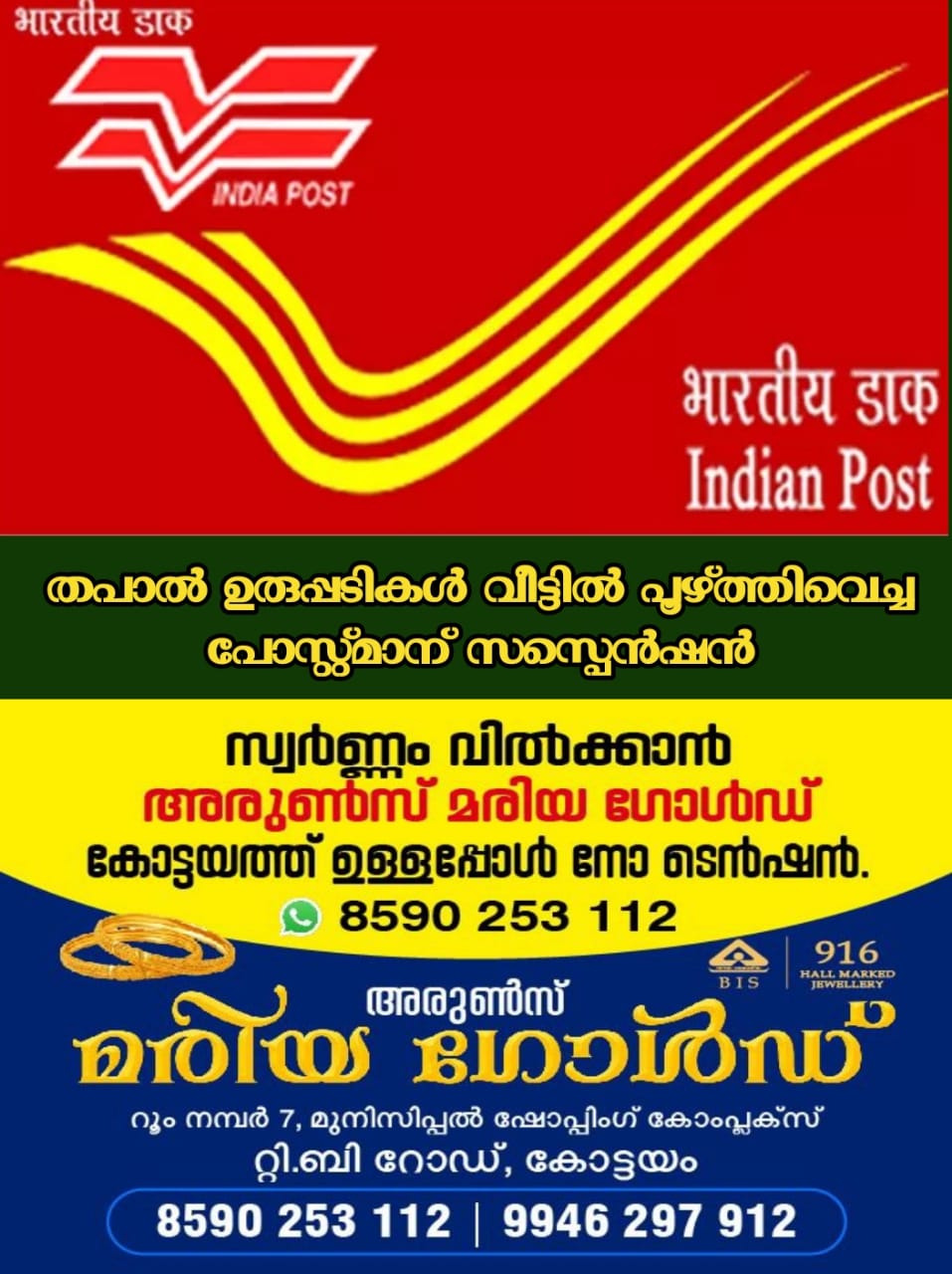 അയിലൂർ ഹെഡ് പോസ്റ്റ് ഓഫിസിന് കീഴിലെ കയറാടി പയ്യാങ്കോട്ടിലെ ബ്രാഞ്ച് പോസ്റ്റ് ഓഫിസിലെ ഇ.ഡി പോസ്റ്റ്മാൻ സി. കണ്ടമുത്തനാണ് (57) തപാലുകൾ വിതരണം ചെയ്യാതെ വീട്ടിൽ സൂക്ഷിച്ചത്. സംഭവത്തിൽ പാലക്കാട് പോസ്റ്റൽ സൂപ്രണ്ട് അന്വേഷണം നടത്തി നടപടി സ്വീകരിക്കാൻ ഉത്തരവിട്ടു. കണ്ടമുത്തനെ താൽക്കാലികമായി ജോലിയിൽനിന്ന് മാറ്റിനിർത്തിയതായി അസി. പോസ്റ്റല് സൂപ്രണ്ട് എന്. ഉണ്ണികൃഷ്ണന് അറിയിച്ചു.