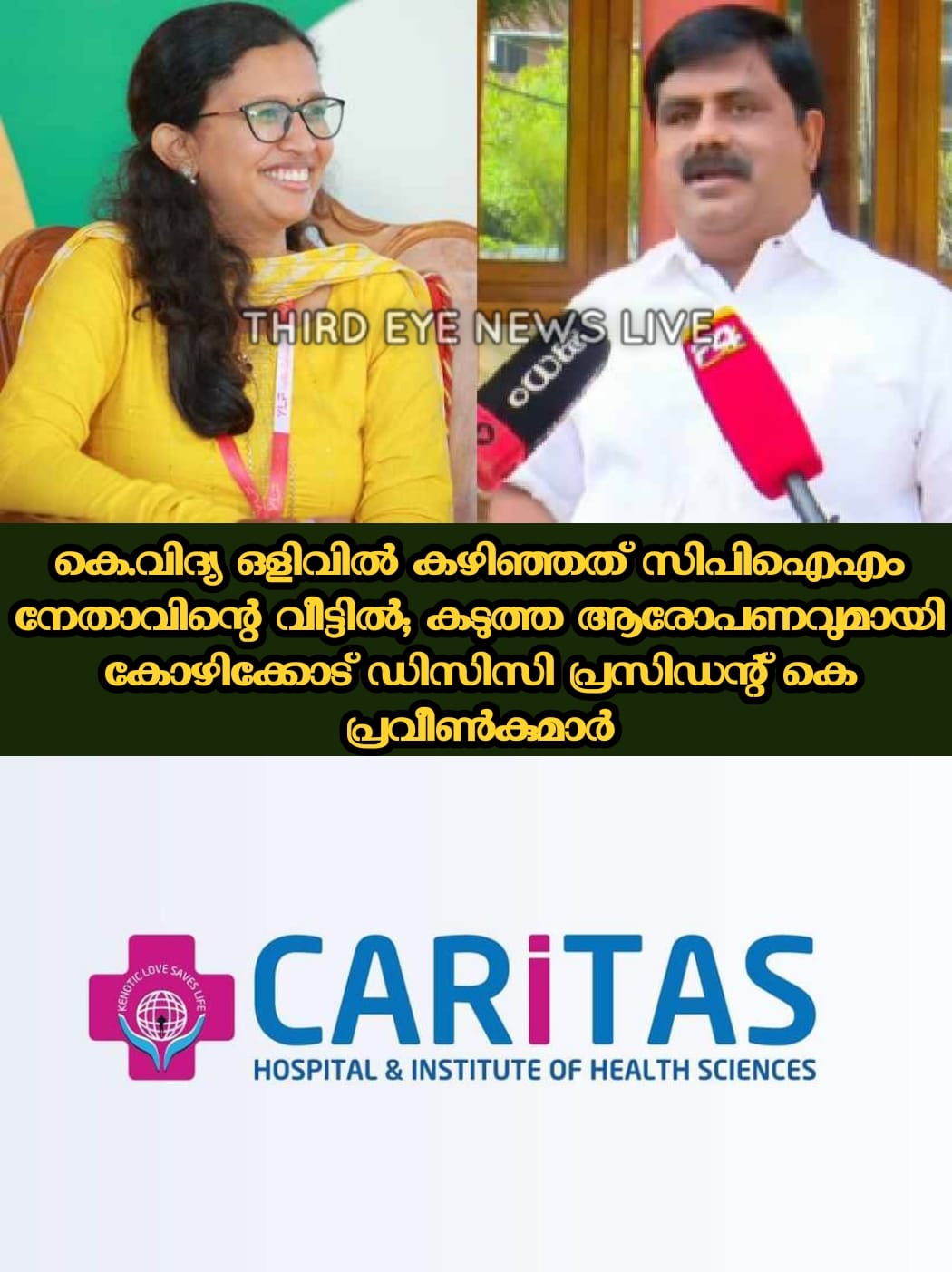 കൊച്ചി: വ്യാജ രേഖ ചമച്ച കേസില് അറസ്റ്റിലായ കെ.വിദ്യ ഒളിവില് കഴിഞ്ഞത് സിപിഐഎം നേതാവിന്റെ വീട്ടിലെന്ന് കോഴിക്കോട് ഡിസിസി പ്രസിഡന്റ് കെ പ്രവീണ്കുമാര്. നേതാവിന്റെ പേര് താന് വെളിപ്പെടുത്തുന്നില്ല. സിപിഐഎം ജില്ലാ കമ്മിറ്റിയും പൊലീസും വിദ്യക്ക് ഒളിവില് കഴിയാന് സഹായം നല്കിയെന്നും പ്രവീണ് കുമാര് ആരോപിച്ചു. മേപ്പയൂരില് കോണ്ഗ്രസിന്റെ നേതൃത്വത്തില് ഇന്ന് പ്രതിഷേധ പ്രകടനം നടത്തും.