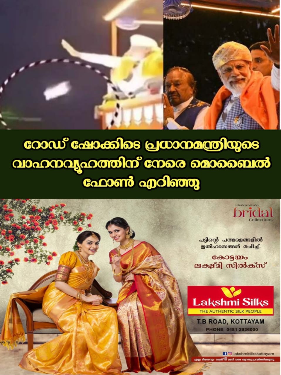 മോദിയുടെ വാഹനവ്യൂഹത്തിന് നേരെ ആൾക്കൂട്ടത്തിനിടയിൽ നിന്ന് ഒരു മൊബൈൽ ഫോൺ എറിയുകയായിരുന്നു. ജനക്കൂട്ടത്തിന് നേരെകൈവീശി കാണിക്കുന്നതിനിടെ മോദിക്ക് തൊട്ടുമുമ്പിൽ മൊബൈൽ ഫോൺ വന്നുവീണു.