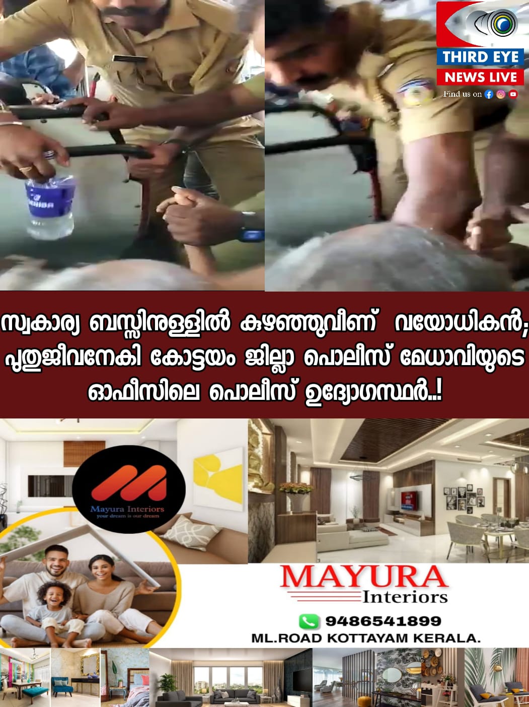 ഇതേ ബസ്സിൽ പൊൻകുന്നത്തുനിന്നും പ്രതികളുമായി കോട്ടയത്തേക്ക് വരികയായിരുന്ന ജില്ലാ ഹെഡ് ക്വാർട്ടേഴ്സിലെ പോലീസ് ഉദ്യോഗസ്ഥരായ ഷമീർ സമദ്, അൻസു പി.എസ്, മഹേഷ്, പ്രദീപ് റ്റി.ആര് എന്നിവരും, കൂടാതെ ബസ്സിനുള്ളിൽ മുണ്ടക്കയത്ത് നിന്നും കയറിയ കോട്ടയം സൈബർ സെല്ലിലെ പോലീസ് ഉദ്യോഗസ്ഥനായ ജോബിന്സ് ജെയിംസും ചേർന്ന് വയോധികന് ഫസ്റ്റ് എയ്ഡായ സി.പി.ആർ നൽകുകയും, അല്പ സമയത്തിനുള്ളില് വയോധികന് ആശ്വാസം അനുഭവപ്പെടുകയുമായിരുന്നു. തുടർന്ന് പോലീസ് ഉദ്യോഗസ്ഥർ എത്രയും പെട്ടെന്ന് ബസ് ജില്ലാ ആശുപത്രിയിലേക്ക് പോകുവാൻ അറിയിച്ചതിനെത്തുടർന്ന് ഡ്രൈവർ വാഹനം ജില്ലാ ആശുപത്രിയിൽ എത്തിക്കുകയുമായിരുന്നു.