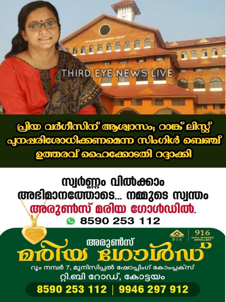 കണ്ണൂർ സർവകലാശാല അസോസിയേറ്റ് പ്രൊഫസർ നിയമനവുമായി ബന്ധപ്പെട്ട സിംഗിൾ ബെഞ്ച് ഉത്തരവ് ചോദ്യം ചെയ്താണ് പ്രിയ വർഗീസ് ഹർജി സമര്പ്പിച്ചിരുന്നത്.
