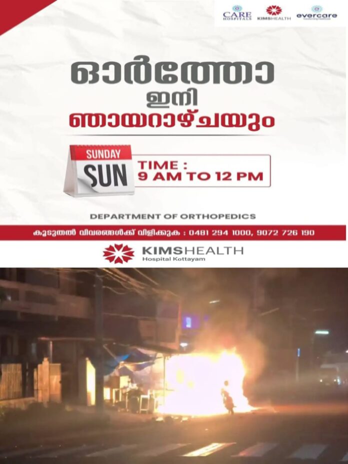 കടയില് ഉണ്ടായിരുന്ന ആളുകള് ഇറങ്ങി ഓടിയതിനാല് വലിയ അപകടം ഒഴിവായി. തീപിടുത്തത്തില് രണ്ട് ബൈക്കുകള് കത്തി നശിച്ചു.