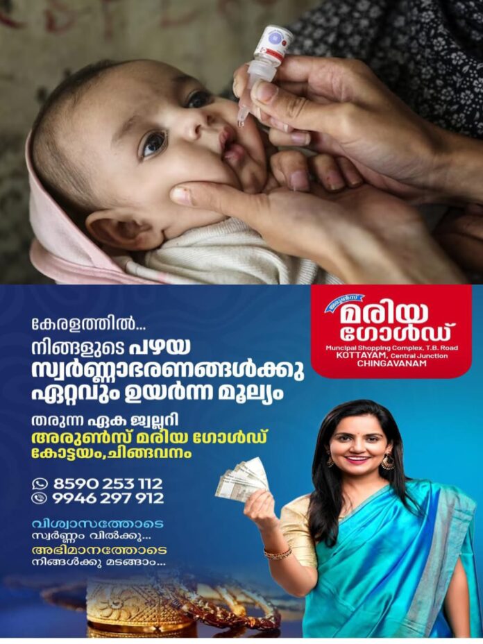 കോട്ടയം: പോളിയോ വൈറസ് നിർമാർജനം ലക്ഷ്യമിട്ടു നടത്തുന്ന പൾസ് പോളിയോ ഇമ്മ്യൂണൈസേഷൻ പരിപാടി കോട്ടയം ജില്ലയില് ഇന്ന് നടക്കും.