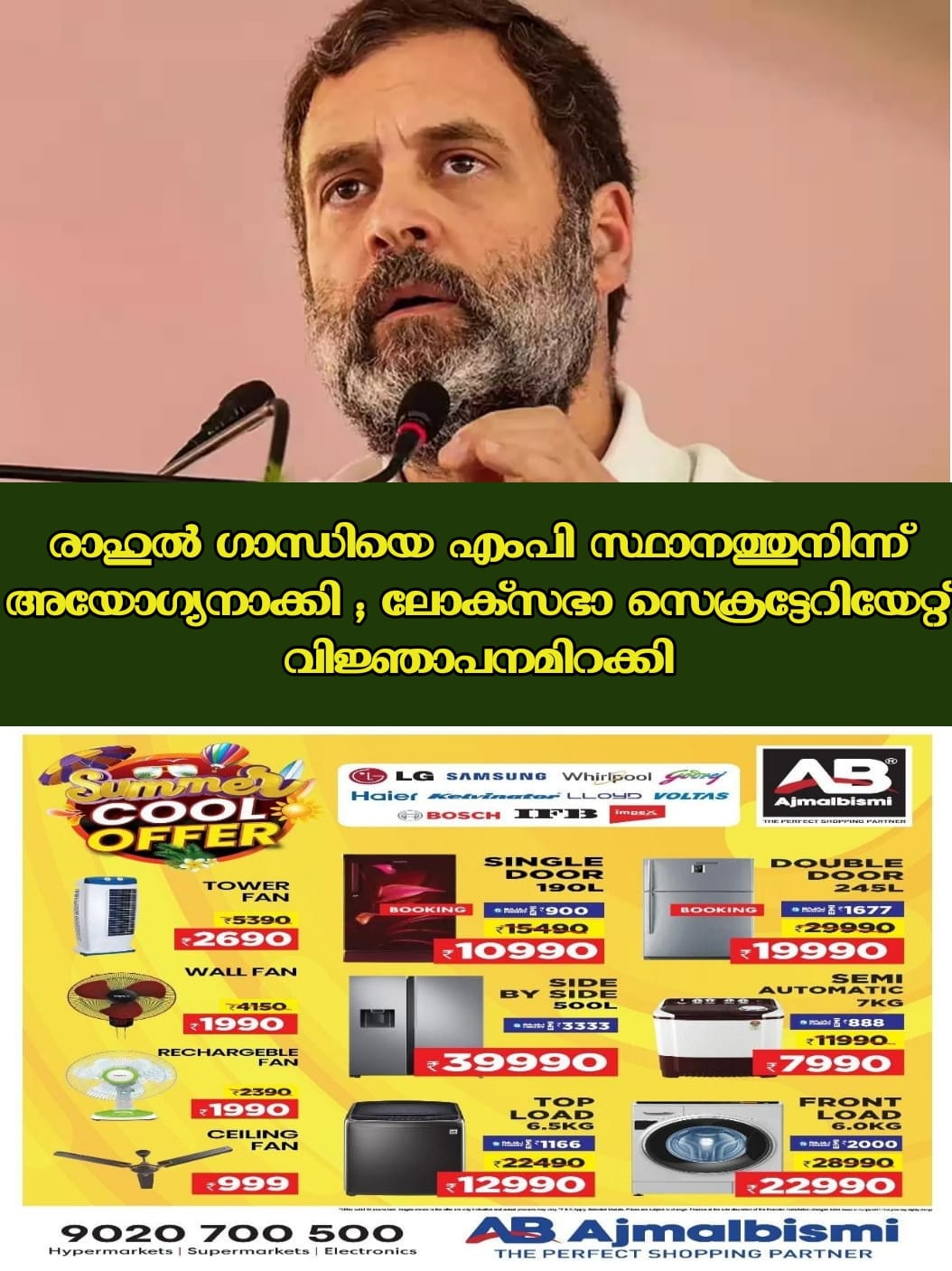 ന്യൂഡൽഹി: പ്രധാനമന്ത്രി നരേന്ദ്ര മോദിയെ വിമർശിച്ചതിന് കോടതി രണ്ടുവർഷം തടവിന് ശിക്ഷിച്ച രാഹുല് ഗാന്ധി എംപിയെ അയോഗ്യനാക്കി ലോക്സഭാ സെക്രട്ടേറിയറ്റ് ഉത്തരവിറക്കി.