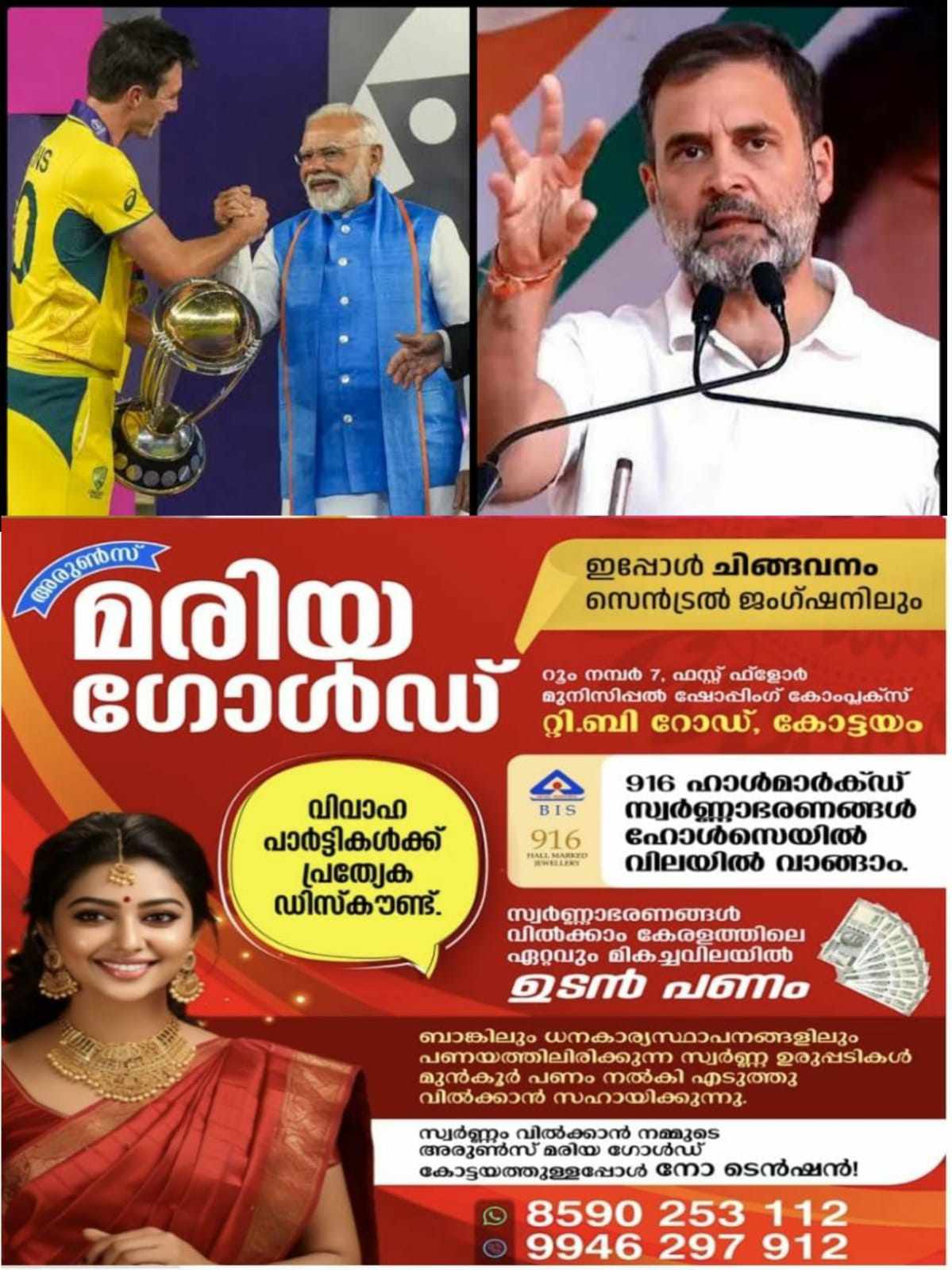 ‘ഇന്ത്യ തോറ്റത് മോദിയുടെ സാന്നിധ്യം കൊണ്ടാണ്. ഇന്ത്യ നന്നായി കളിച്ച് ഒറ്റ കളിയും തോൽക്കാതെ ഫൈനൽ വരെ എത്തിയതാണ്. എന്നാൽ അപശകുനമായി മോദി ഫൈനൽ മത്സരം കാണാനെത്തിയതോടെ കളി തോറ്റ് ഇന്ത്യ പുറത്തായി’- എന്നായിരുന്നു രാഹുലിന്റെ പരിഹാസം.