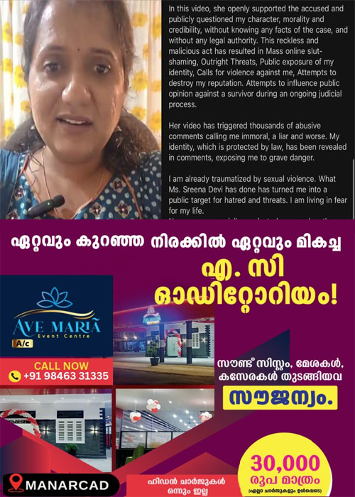 താൻ രാഹുൽ മാങ്കൂട്ടത്തിലിനൊപ്പമാണെന്നും അതിജീവിതയ്ക്കൊപ്പം നിൽക്കുമ്പോൾ തന്നെ ‘അതിജീവിതന്റെ’ ഭാഗം കൂടി കേൾക്കണമെന്നുമാണ് ശ്രീനാദേവി വ്യക്തമാക്കിയത്.