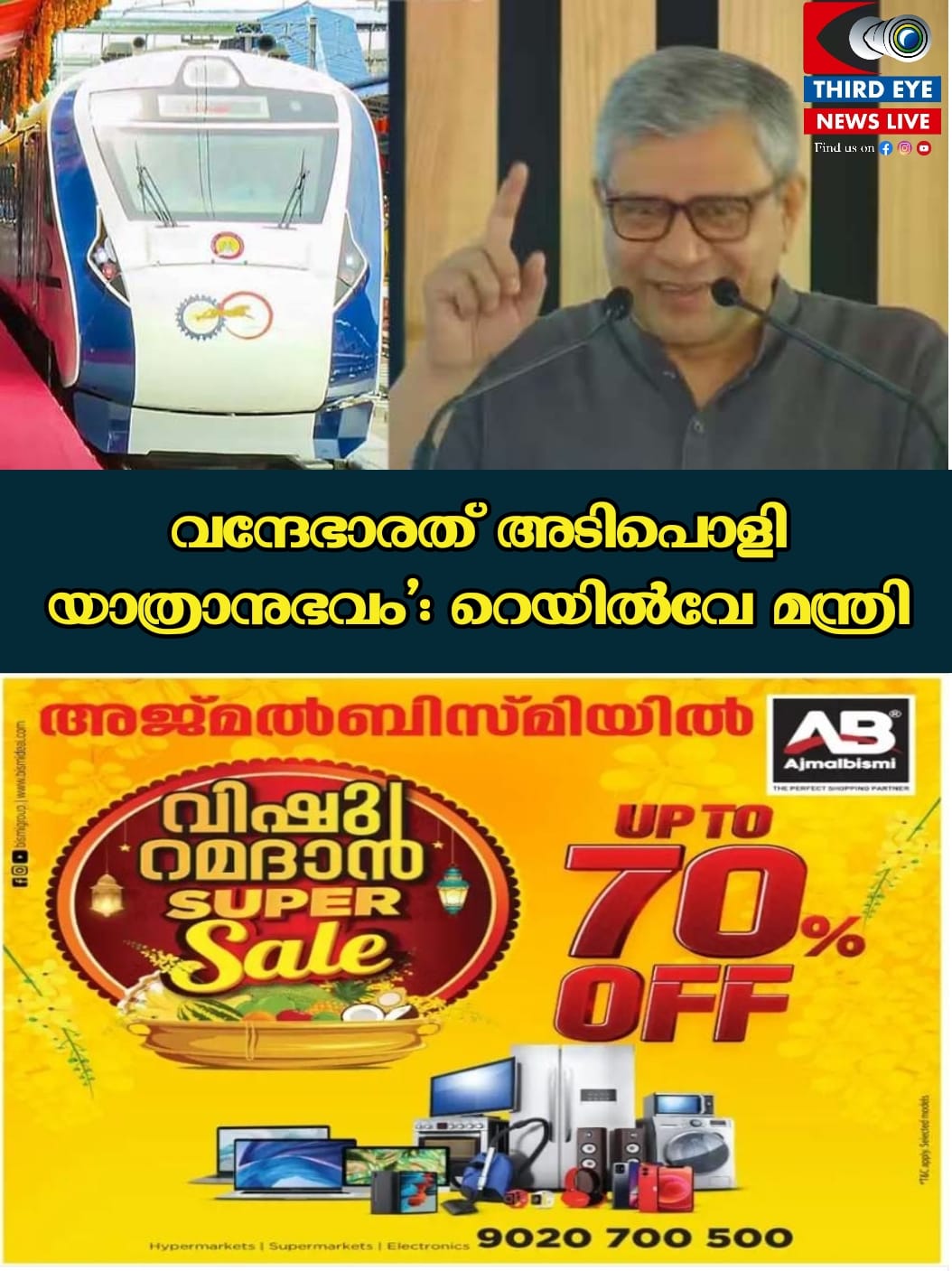 തിരുവനന്തപുരം: വന്ദേഭാരത് ‘അടിപൊളി’ യാത്രാനുഭവമായിരിക്കുമെന്ന് കേന്ദ്ര റെയില്വേ മന്ത്രി അശ്വിനി വൈഷ്ണവ്. കഥകളിയുടെയും കളരിപ്പയറ്റിന്റെയും ആയുര്വേദത്തിന്റെയും നാട്ടില് വന്ദേഭാരത് പുതിയ ആകര്ഷണമാണെന്നും വന്ദേഭാരത് ഉദ്ഘാടന വേദിയില് മലയാളത്തില് സംസാരിച്ച് ജനങ്ങളെ കൈയ്യിലെടുത്ത് കേന്ദ്ര റെയില്വേ മന്ത്രി അശ്വിനി വൈഷ്ണവ്.