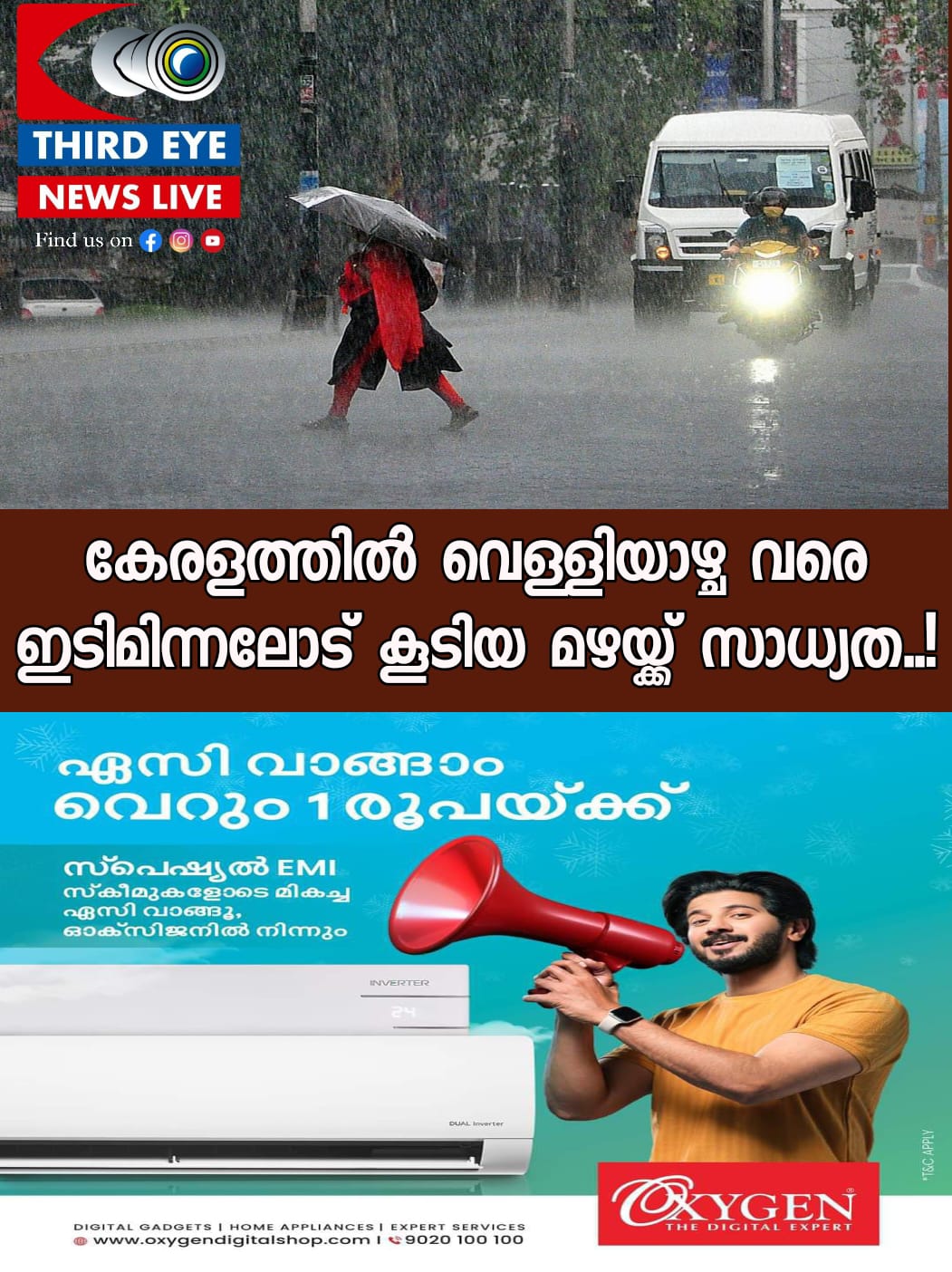 തിരുവനന്തപുരം: കേരളത്തിൽ വെള്ളിയാഴ്ച വരെ ഒറ്റപ്പെട്ടയിടങ്ങളില് ഇടിമിന്നലോട് കൂടിയ മഴയ്ക്ക് സാധ്യത. 40 കിലോമീറ്റര് വരെ വേഗത്തില് ശക്തമായ കാറ്റിനും സാധ്യതയുണ്ടെന്ന് കേന്ദ്ര കാലാവസ്ഥാ വകുപ്പിന്റെ മുന്നറിയിപ്പ്. ജാഗ്രത പാലിക്കണമെന്നും മുന്നറിയിപ്പിൽ പറയുന്നു.