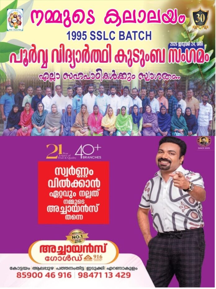 “ഭൂതകാലങ്ങളിൽ -2026 ” ; ഈരാറ്റുപേട്ട തെക്കേക്കര ഗവ:ഹയർ സെക്കണ്ടറി സ്കൂളിലെ പൂർവ്വ വിദ്യാർത്ഥി സംഗമം (24/01/25) ശനിയാഴ്ച ; 1995 എസ്എസ്എൽസി ബാച്ചിലെ വിദ്യാർത്ഥികളാണ് നാളെ സ്കൂൾ അങ്കണത്തിൽ ഒത്തുചേരുന്നത്