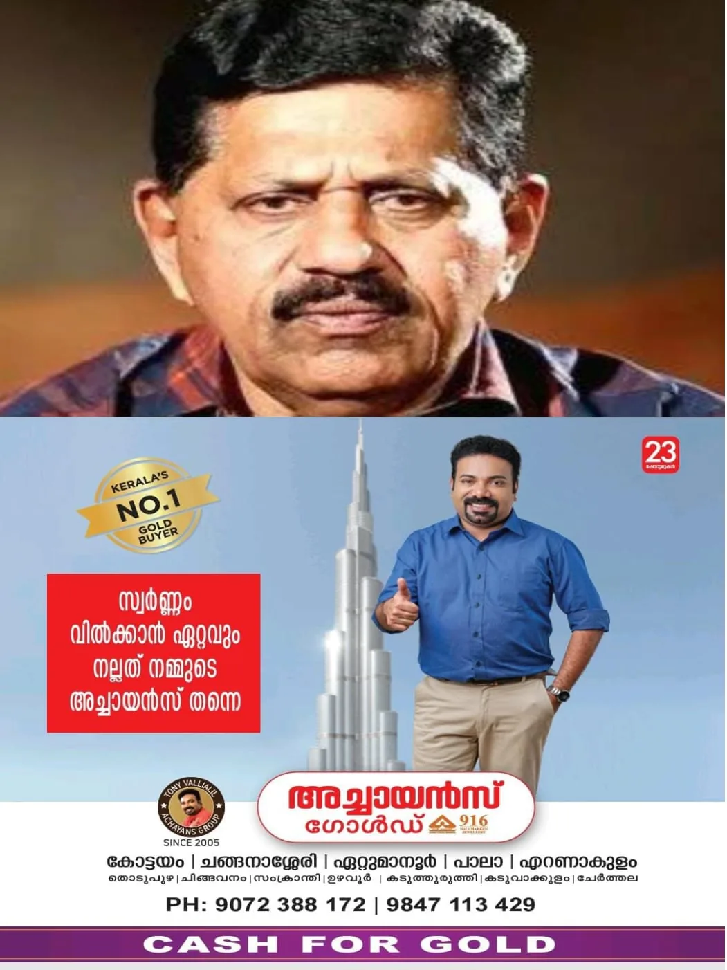 കോട്ടയം : കണ്ണൂർ വളപട്ടണത്ത് 300 പവനും ഒരു കോടിയും