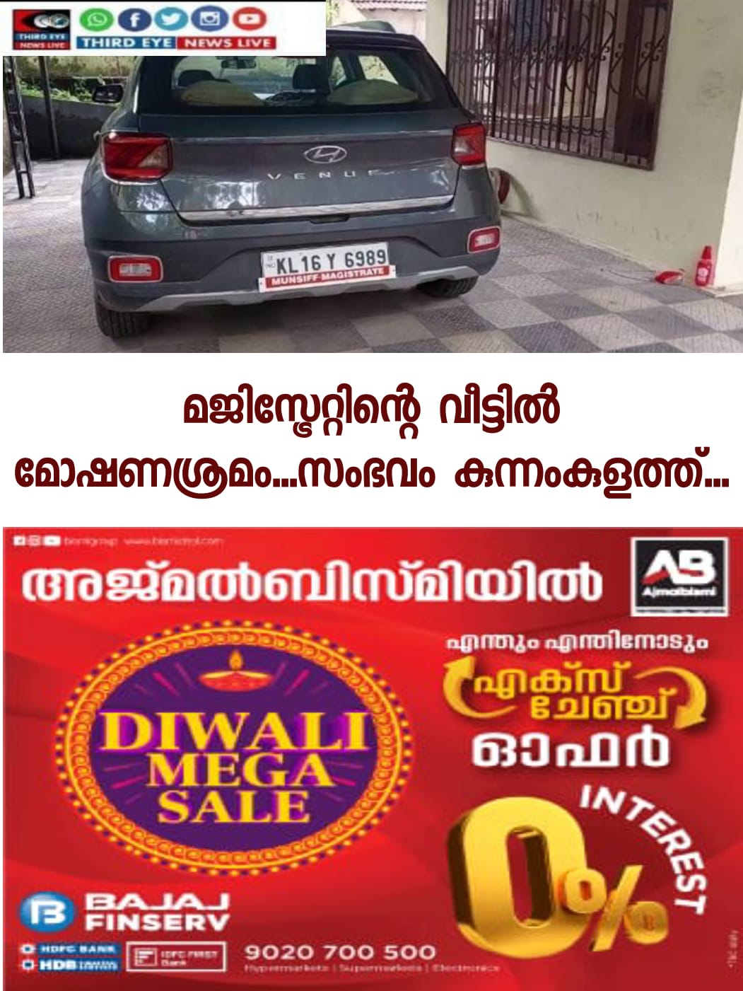കുന്നംകുളത്ത് മജിസ്ട്രേറ്റിന്റെ വീട്ടിൽ മോഷണശ്രമം. ജുഡീഷ്യൽ ഫസ്റ്റ് ക്ലാസ് മുൻസിഫ് മജിസ്ട്രേറ്റ് ലക്ഷ്മി ശ്രീനിവാസിന്റെ വീട്ടിലാണ് മോഷണശ്രമം നടന്നത്. കുറച്ച് ദിവസങ്ങളായി മജിസ്ട്രേറ്റ് ലീവിലായിരുന്നു. വീട് വൃത്തിയാക്കുന്നതിനായി ജോലിക്കാർ എത്തിയപ്പോഴാണ് വീട് തുറന്നു കിടക്കുന്നത് കണ്ടത്.പോലീസ് സ്ഥലത്തെത്തി അന്വേഷണം ആരംഭിച്ചു.
