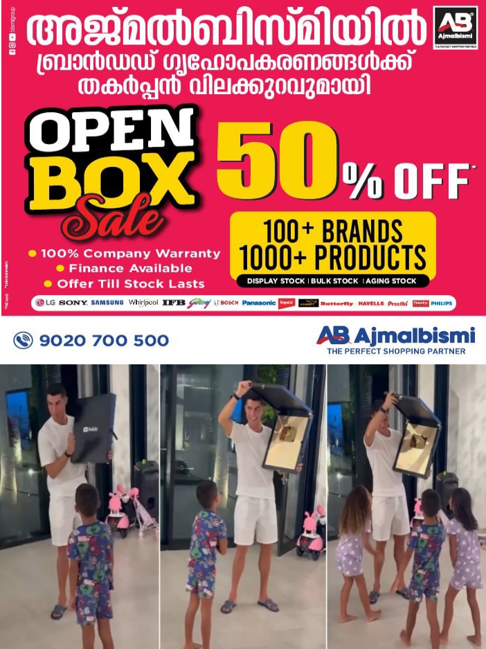 ഗോൾഡൺ പ്ലേബട്ടൺ തുറക്കുന്നതിന്റെ വീഡിയോയും താരം ചാനലിലൂടെ പങ്കുവെച്ചു. തന്റെ കുടുംബത്തിനൊപ്പമാണ് ഗോൾഡൺ പ്ലേബട്ടൺ തുറന്നത്. റൊണാഡോയുടെ മക്കൾ സന്തോഷത്തോടെ തുള്ളിച്ചാടുന്നതും വീഡിയോയിൽ കാണാം.‘എൻ്റെ കുടുംബത്തിന് ഒരു സമ്മാനം. എല്ലാ സബ്സ്ക്രൈബേഴ്സിനും നന്ദി!’, താരം കുറിച്ചു.