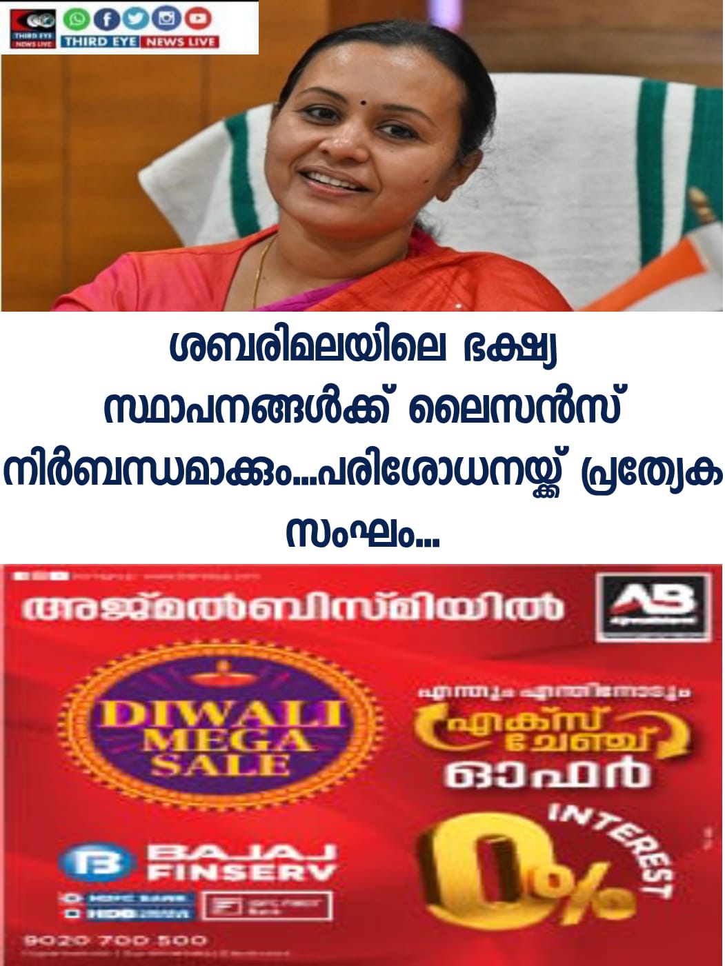 ശബരിമലയില്‍ ഭക്ഷ്യ സ്ഥാപനങ്ങള്‍ക്ക് ലൈസന്‍സ് ഉറപ്പാക്കും: മന്ത്രി വീണാ ജോര്‍ജ്