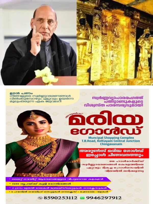 പറവൂർ: ശബരിമല സ്വർണക്കൊള്ള സിബിഐയെക്കൊണ്ട് അന്വേഷിപ്പിക്കുമെന്ന പ്രഖ്യാപനവുമായി കേന്ദ്ര പ്രതിരോധ മന്ത്രി രാജ്നാഥ് സിംഗ്.