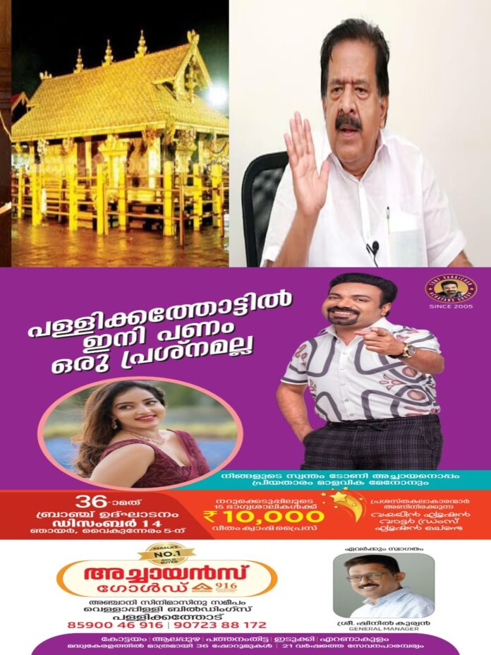 ശബരിമല സ്വർണ്ണക്കൊള്ളയുമായി ബന്ധപ്പെട്ട് ഏതെങ്കിലും തരത്തിലുള്ള തെളിവുകള് ചെന്നിത്തല അന്വേഷണ സംഘത്തിന് കൈമാറുമോ എന്ന കാര്യത്തിലും ആകാംക്ഷയുണ്ട്.